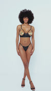 Adventurous Lace Two-Piece Set - Open Cups with Golden Nipplets