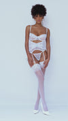 Alluring Two-Piece Bustier, Garters & Thong Set - White