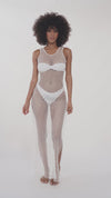 Classic Silhouette Beach Dress with Fishnet & Side Slits - White
