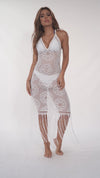 Elegant Silhouette Beach Dress with Side Slit & Fringed Hem - White