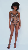 Illusion Boning sexy bodysuit with Transparent Mesh & Contrasting Details - Nude & Black