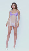 Refreshing Feminine Lace & Tulle Babydoll with Side Slits - Lilac & Nude