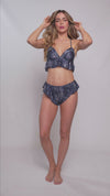 Satin Sapphire Astral Print Two-Piece Lingerie Set