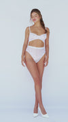This sensual two-piece floral lace and striped mesh set in white is the ultimate blend of elegance and seduction. The combination of intricate lace, bold mesh, and a flattering fit ensures that you’ll look and feel your best, whether you’re celebrating a special occasion or indulging in a moment of luxury. Add this stunning set to your collection for a look that’s both timeless and unforgettable. 💕