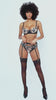 Make a stunning impact with this exquisite three-piece set, featuring luxurious embroidered lace and smooth satin in a captivating nude and black color combination. This set includes a bra, garter belt, and thong, each designed to showcase your elegance and confidence. Perfect for special occasions or whenever you want to feel your most glamorous, this set is crafted to leave a lasting impression. ✨